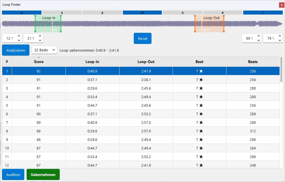 In the article about Beat-Snap Previously, the focus was on how to cleanly align existing loop markers with the beat. The new Loop Finder starts even earlier: it helps you find suitable points in the song in the first place.